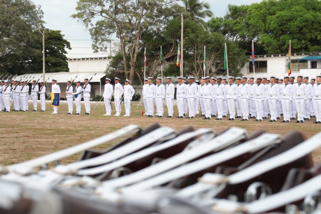 En una solemne ceremonia realizada en las instalaciones de la Escuela Naval de Suboficiales “ARC Barranquilla”, 186 jóvenes aspirantes a Grumetes Navales Regulares y Administrativos, juraron ante el pabellón nacional continuar su proceso de formación como Marinos de Colombia.