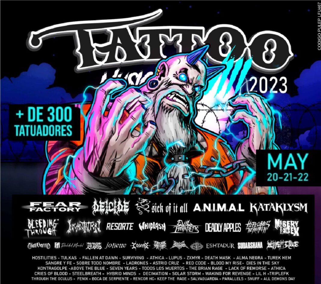 Con más de 40 agrupaciones, entre ellas, muchas legendarias y reconocidas mundialmente junto a más de 300 tatuadores, colectivos locales y marcas independientes se dan cita este 20,21 y 22 de mayo de 2023 en el Centro de Eventos Autopista Norte para poner a gozar a todos los asistentes a esta gran experiencia llena de tatuajes, música y diversión.
