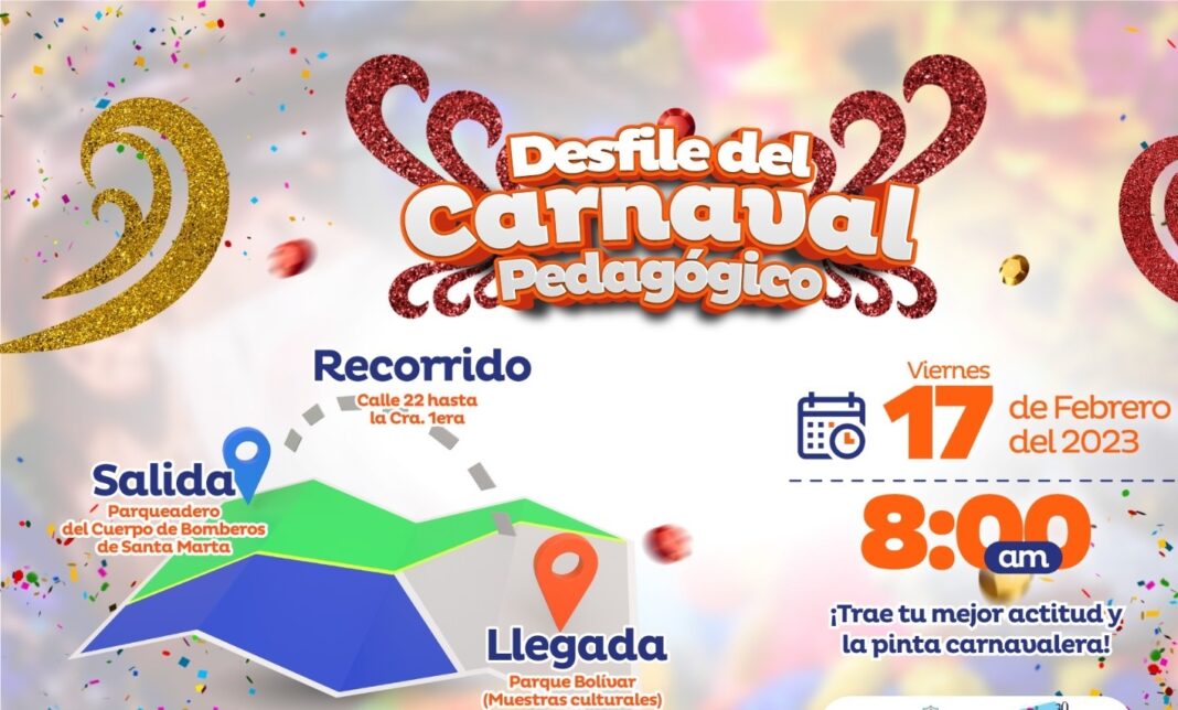 Como una manera de fomentar el arte, la cultura y las tradiciones de la ciudad, este viernes 17 de febrero se realizará el desfile folclórico del Carnaval Pedagógico 2023, una actividad coordinada entre la Alcaldía de Santa Marta, por medio de la Secretaría de Educación Distrital, las instituciones educativas y el comité organizador de este evento.