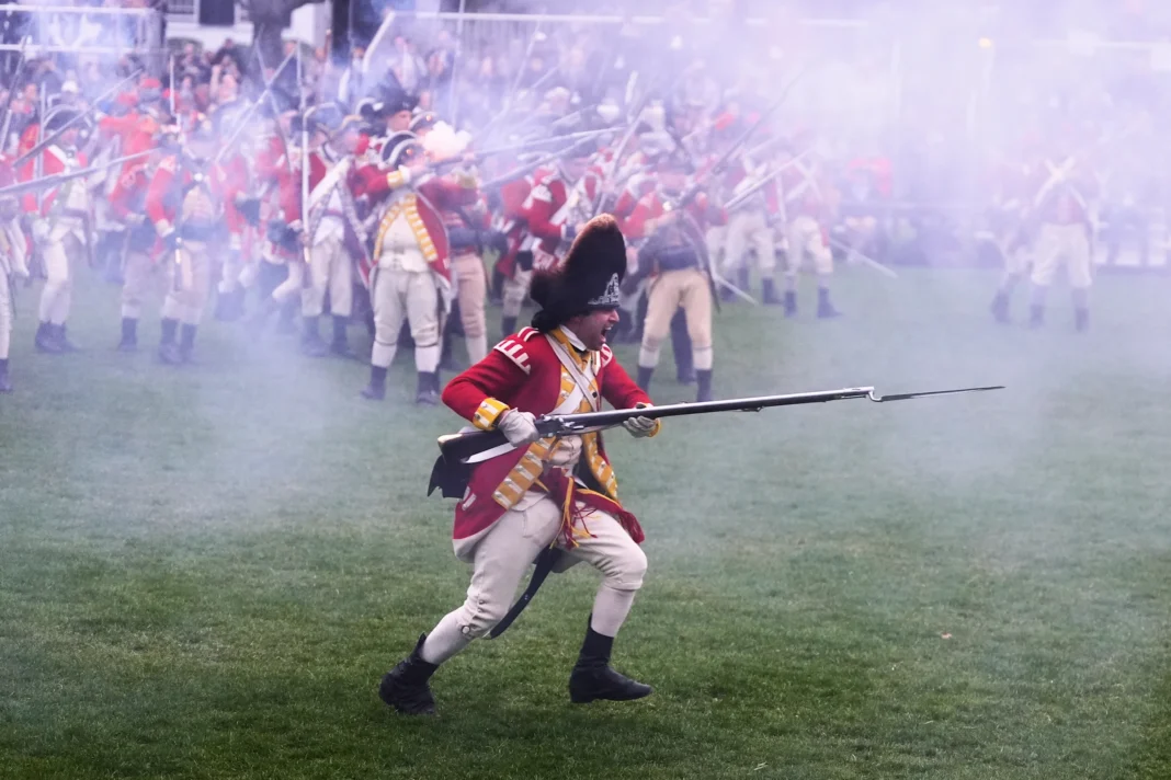 Miles de personas llegaron a Lexington, Massachusetts, antes del amanecer del sábado para presenciar una recreación de cómo comenzó la revolución estadounidense hace 250 años, con el estallido de disparos y una estela de giro colonial.