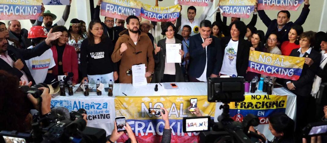 “Hoy estamos iniciando el camino de cumplimiento de ese compromiso político y esa posición de que en Colombia no entra la técnica del fracking y las técnicas de yacimientos no convencionales. No es lógico que si queremos iniciar una transición energética, vayamos a profundizar la dependencia de combustibles fósiles con técnicas de altísima incertidumbre e impacto social y ambiental”, afirmó la Ministra de Ambiente y Desarrollo Sostenible, Susana Muhamad, durante la radicación, este miércoles, del proyecto de ley que le cierra la puerta a esta técnica en el país.
