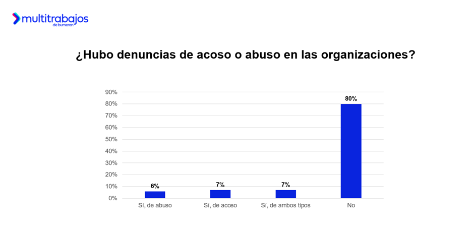 El 80% de los especialistas en Recursos Humanos afirma que no se han presentado casos de acoso o abuso en sus organizaciones y el 20% señala la existencia de denuncias.