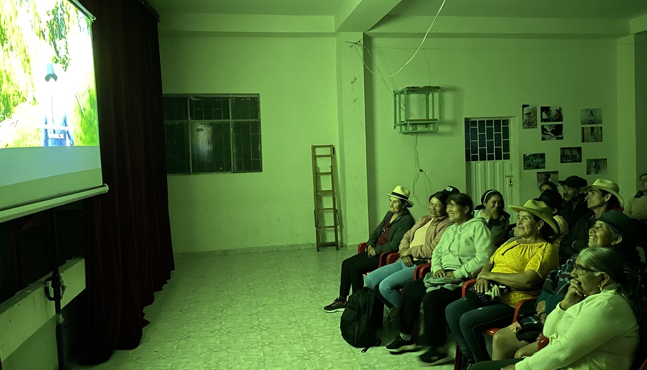 Con la coordinación de Rocío Manrique, de Asoartes —una de las asociaciones que hacen parte de Tinta Dulce—, llegaron desde varias veredas cercanas alrededor de quince artesanas al aula múltiple del municipio, ubicado en el norte de Boyacá, cerca del Nevado del Cocuy. Algunas de ellas asistieron sin saber en qué consistía la invitación. “No sabíamos, era una sorpresa que nos dieron y nos gustó”, comenta Teodosia Buitrago, una de las protagonistas del corto, que se vio por primera vez en pantalla grande.