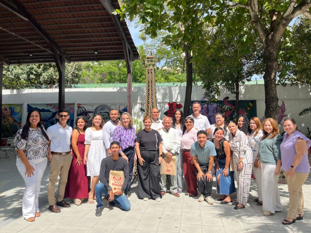 Karine Christophe, directora general de la Alianza Francesa, expresó su entusiasmo al señalar que “esto fue un sueño hecho realidad; soñamos con apoyar a los docentes en la enseñanza del idioma francés en los colegios públicos, y hoy celebramos con alegría la firma de este convenio y la presencia de ustedes en nuestra sede”.