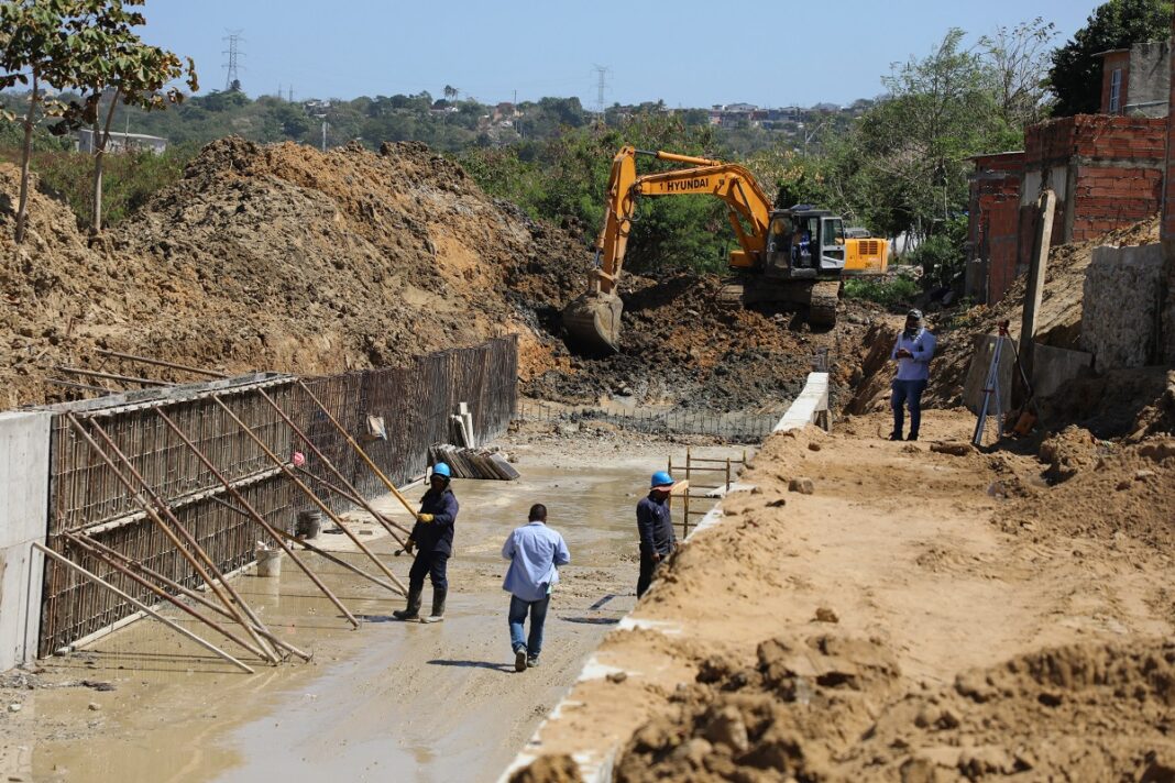 El arroyo se está canalizando con una sección rectangular de concreto y el sistema de alcantarillado de aguas lluvias de los barrios aledaños se está conectando a la canalización.