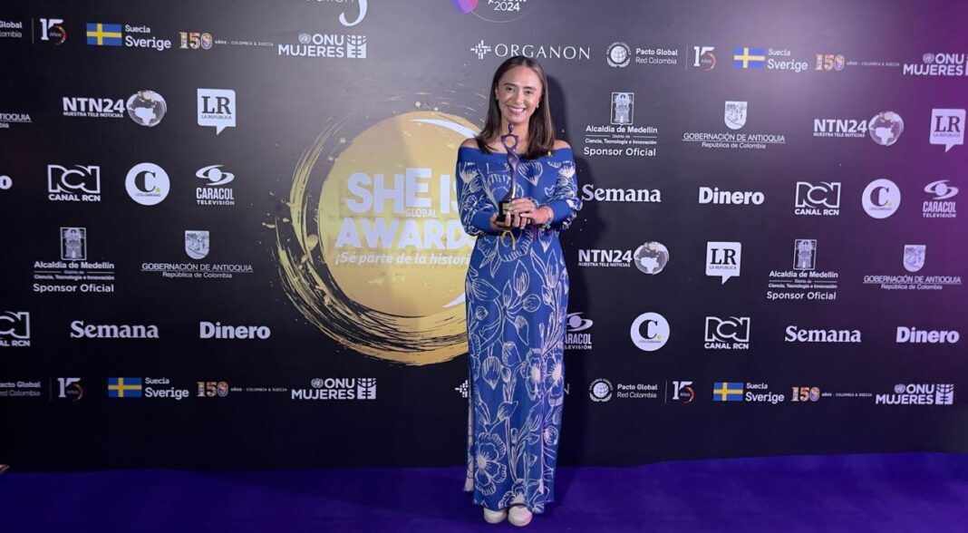 Cheryl Velásquez- Watemberg, fundadora de la red Relianz Win, recibió en representación de Relianz Mining Solutions el reconocimiento a la ‘Organización con Poder de Cambio hacia la Equidad de Género’ en el marco del She Is Global Forum.