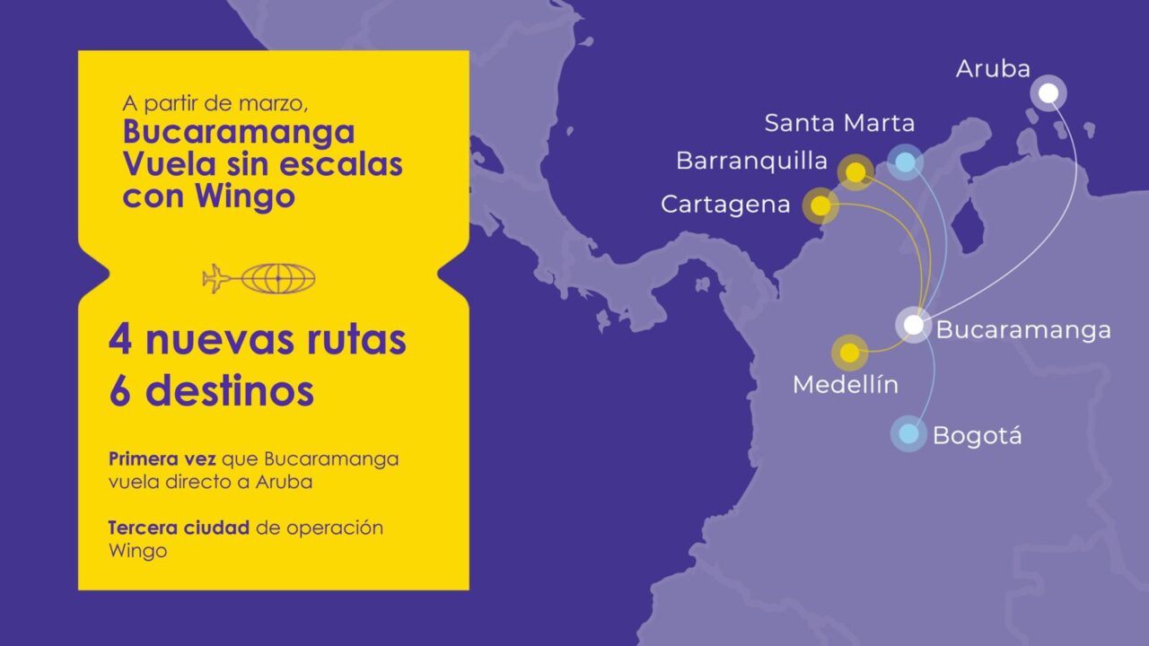 Cabe recordar que Wingo ya contaba con operaciones desde Bucaramanga hacia Bogotá y Santa Marta. A partir de marzo, se fortalecerá la operación hacia la capital, pasando de 4 a 6 frecuencias semanales, es decir, operación todos los días excepto sábado.