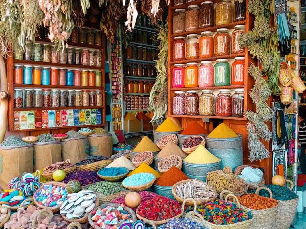 En los pintorescos canastos habían puesto toneladas de arena. Pero arena en todos los colores: beige, blanca, vinotinto, café, negra, verde, roja, gris. Jamás había visto un escenario que capturó mi atención de manera tan directa. Intrigada, me animé a preguntar. Aquellos granos minúsculos, de olores surtidos, eran especias. ¿Especias? Venían del interior de Marruecos, cultivadas en la propia África, desde la antigüedad. Se ofrecían al público en aquellos canastos tejidos con pulcritud que animaban la decoración de la tienda, haciendo danzar al tiempo, la vista y el olfato.