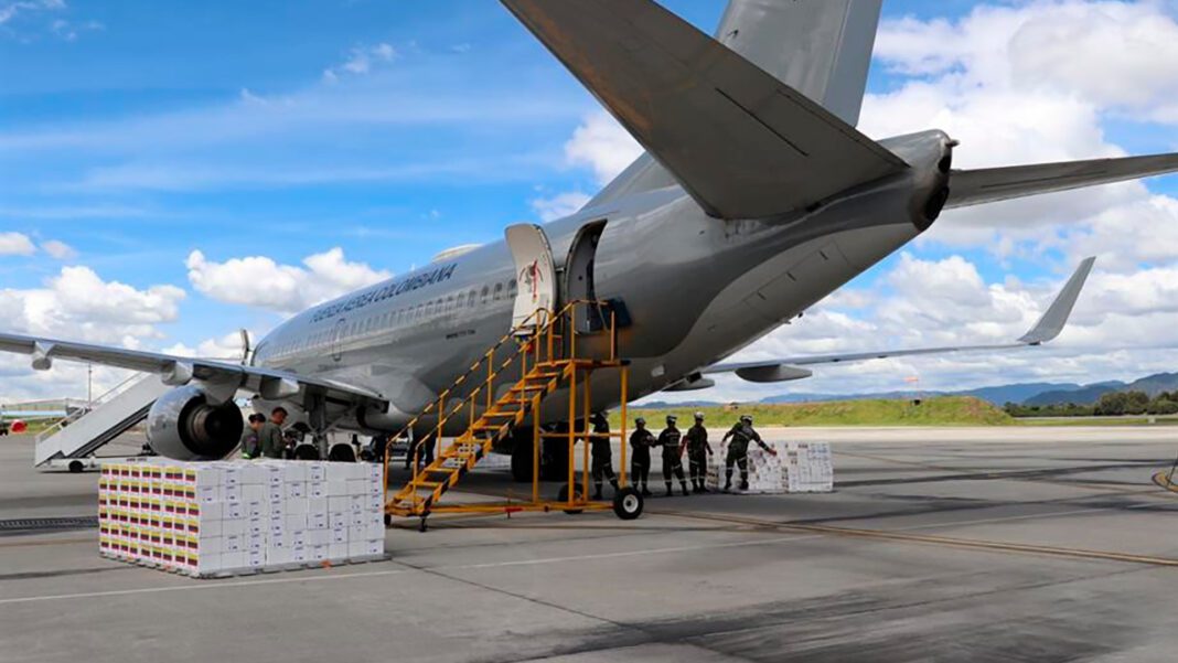 La ayuda humanitaria, dispuesta por la la Unidad Nacional para la Gestión del Riesgo de Desastres (UNGRD), llegó al Aeropuerto Internacional Felipe Ángeles, ubicado en Ciudad de México, en una aeronave Boeing 737 de la FAC que despegó del Comando Aéreo de Transporte Militar (CATAM) el martes en la tarde.