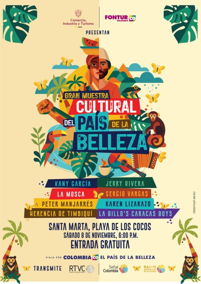 Santa Marta, Magdalena, 23 de octubre de 2025. El próximo sábado 8 de noviembre, la magia del Caribe colombiano será el escenario de la Gran Muestra Cultural del País de la Belleza, una puesta en escena gratuita y multitudinaria que reunirá a miles de personas en la Playa de los Cocos, en Santa Marta.
