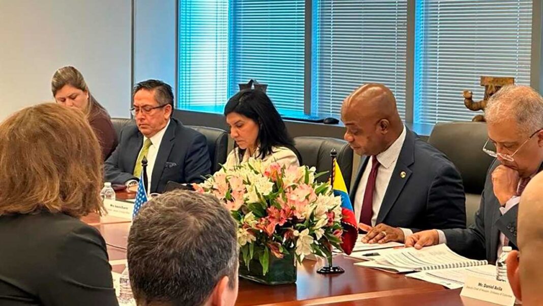 El encuentro se efectuó en la Embajada de Colombia en EE.UU. y la delegación colombiana fue encabezada por el viceministro de Relaciones Exteriores, Francisco Coy; el embajador Murillo y el director de Migración Colombia, Fernando García.