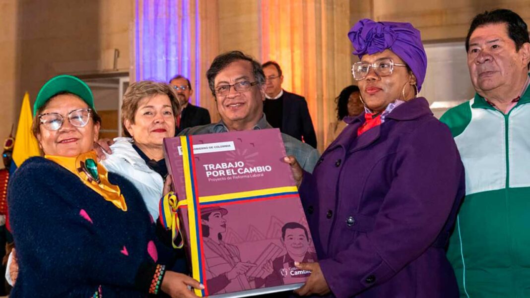 Cabe señalar que, durante el evento, el Presidente Petro recibió un libro del proyecto de ley de manos de la Ministra del Trabajo, Gloria Inés Ramírez, y representantes de las organizaciones sindicales del país, quienes posteriormente se dirigieron al Capitolio Nacional a radicar la iniciativa.
