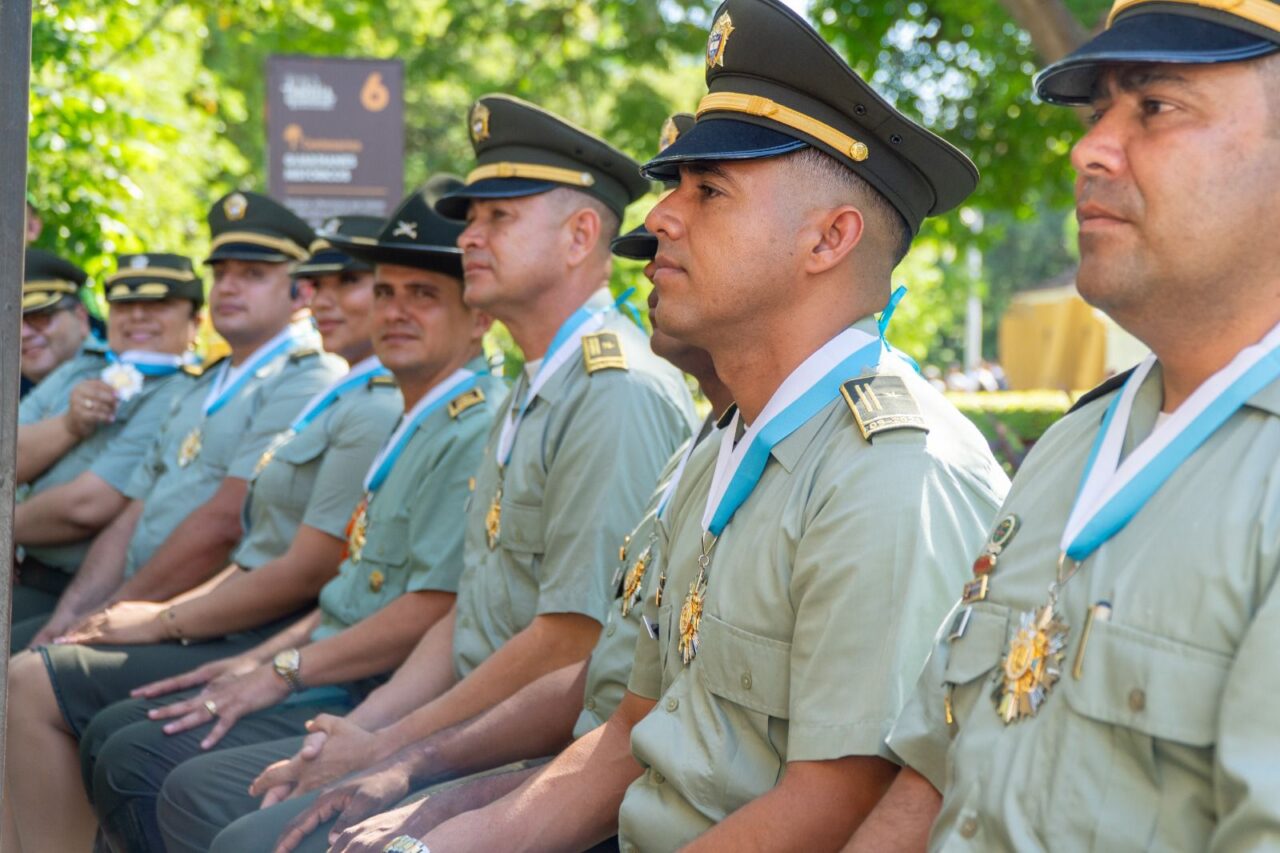 “Sea esta la oportunidad para reconocer a cada uno de los que fueron condecorados hoy y también a los que no fueron condecorados y que a esta hora, están en una esquina, en una moto, atendiendo llamados de la comunidad, llegando a resolver problemas, salvando vidas, porque un policía se convirtió en un eje solucionador integral de problemas, porque la Policía gestiona agua, gestiona luz, gestiona seguridad, gestiona alimentación y eso se llama seguridad integral; porque ustedes hacen más de lo que les toca. Por eso la deuda de la sociedad hacia ustedes nunca podrá ser saldada, porque lo que ustedes hacen supera lo que cualquier persona alguna pudiera hacer”, resaltó.
