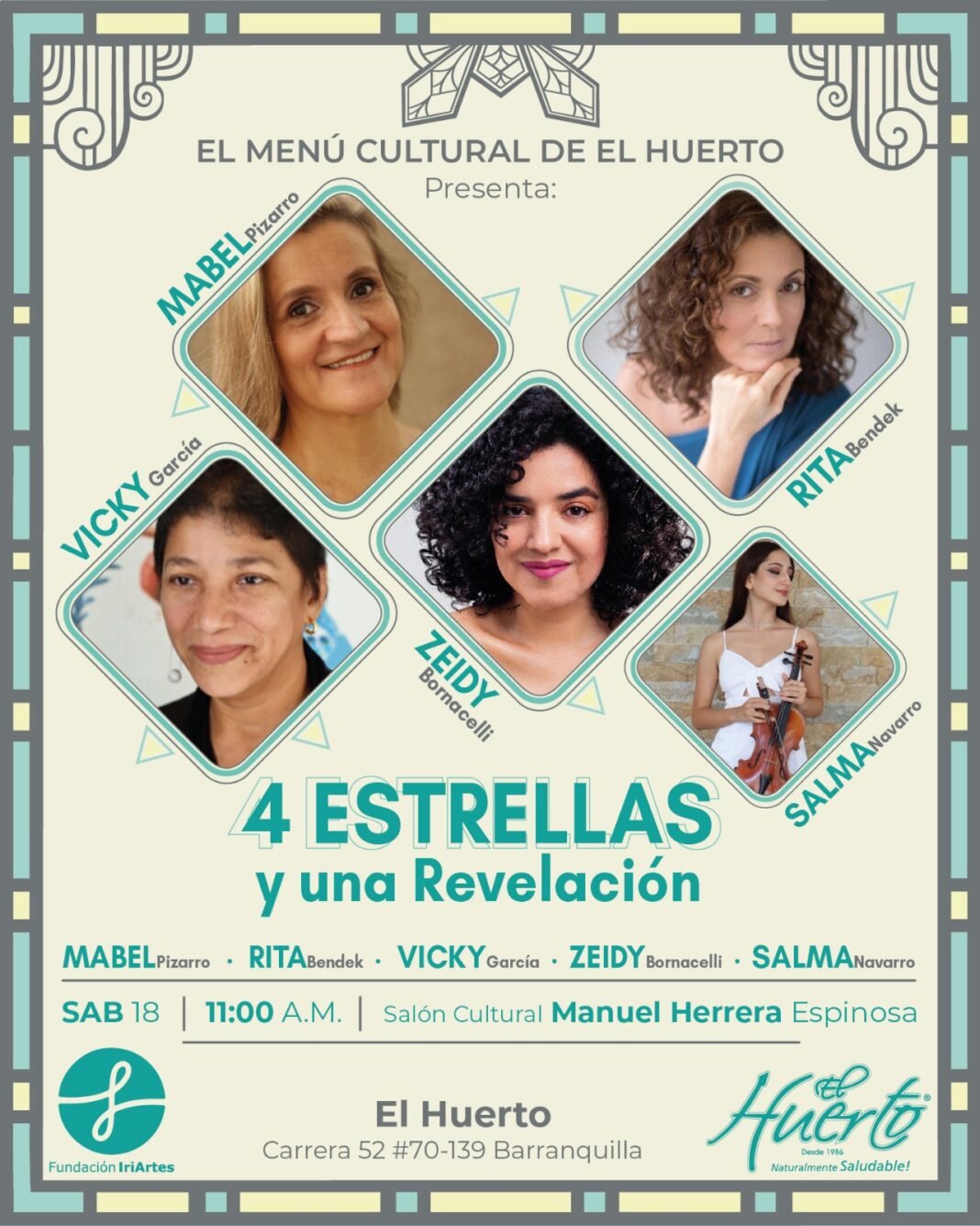 Dos actrices, una abogada y gestora cultural, una cantante y una joven violinista son las invitadas especiales al próximo evento del Menú Cultural de El Huerto, este sábado 18 de marzo.