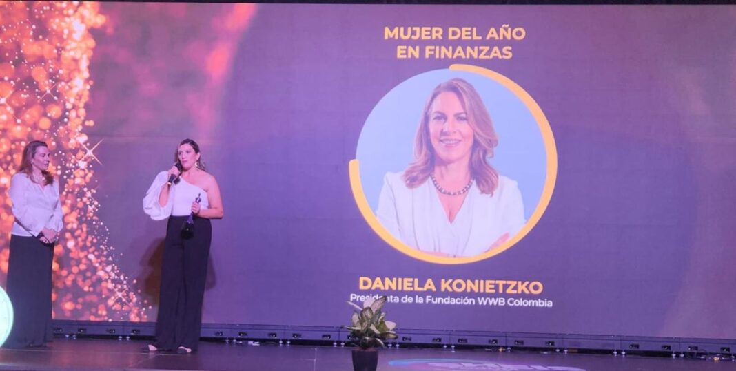 Daniela Konietzko Calero, presidente de la Fundación WWB Colombia, fue galardonada con el premio ‘Mujer del Año en Finanzas’, durante la ceremonia de los She Is Global Awards, celebrada el 9 de agosto, en el Centro de Convenciones Plaza Mayor, de Medellín.