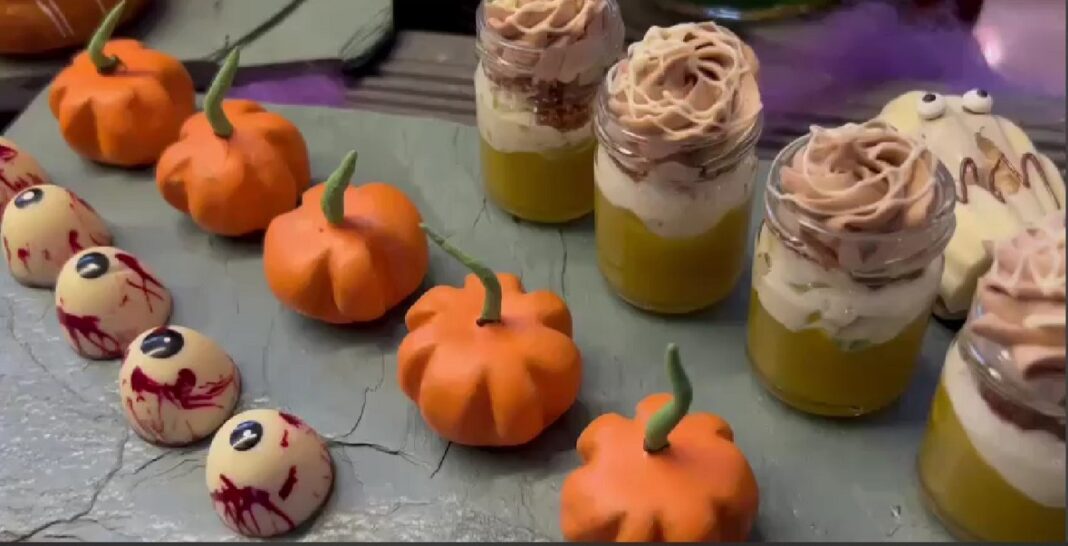 La TABLA OUIJA con variedad de donas y roscas tradicionales con topings alusivos al evento de Halloween y no podía faltar la mesa de postres el DULCE DE HALLOWEEN con Mini calabazas de zanahoria trufas de zanahoria y chocolate blanco; Tumbas de cookies and cream, bavaroise de vainilla y galleta de chocolate; Bombones sangrientos rellenos de frutos rojos; Pócima, un shot de lulada y té chai; Cakes embrujados y Madalenas cubiertas de chocolate de colores. La Barra sangrienta, será el espacio para variedad de bebidas.