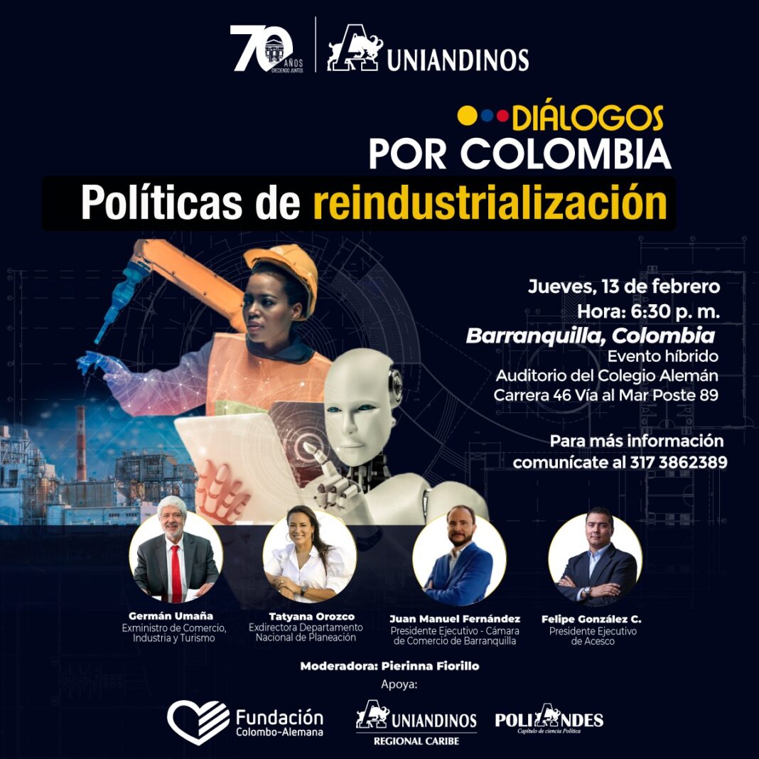 El evento, que se realizará en el auditorio del Colegio Alemán, forma parte de la serie “Diálogos por Colombia” y tiene como objetivo principal abordar los desafíos y oportunidades para la reindustrialización en Colombia, una estrategia clave para impulsar el desarrollo económico sostenible y la creación de empleo en el país.