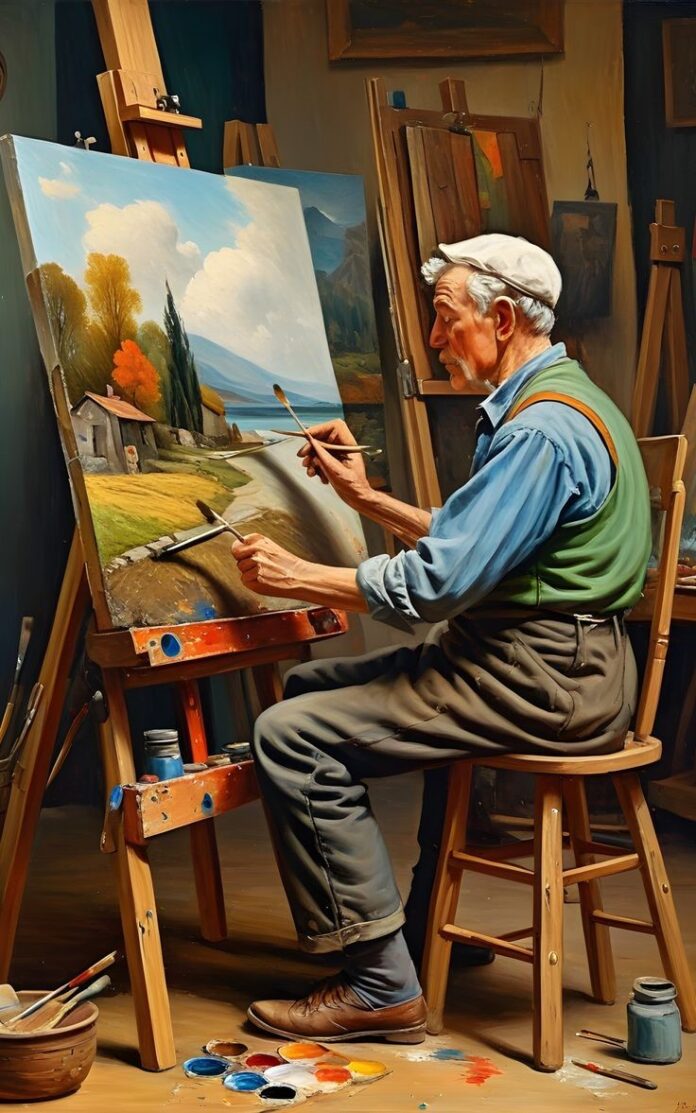 Con mezcla de vergüenza e ilusión, Tomás se inscribió en un curso de pintura. El maestro lo observó en silencio mientras trabajaba.