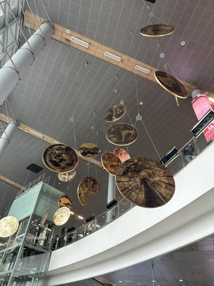 El espacio cultural es colgante, para que los transeúntes en la Terminal 1, frente al punto de información entre las puertas 5 y 6 de los pisos 1 y 2, puedan inspirarse y capturar un recuerdo memorable.