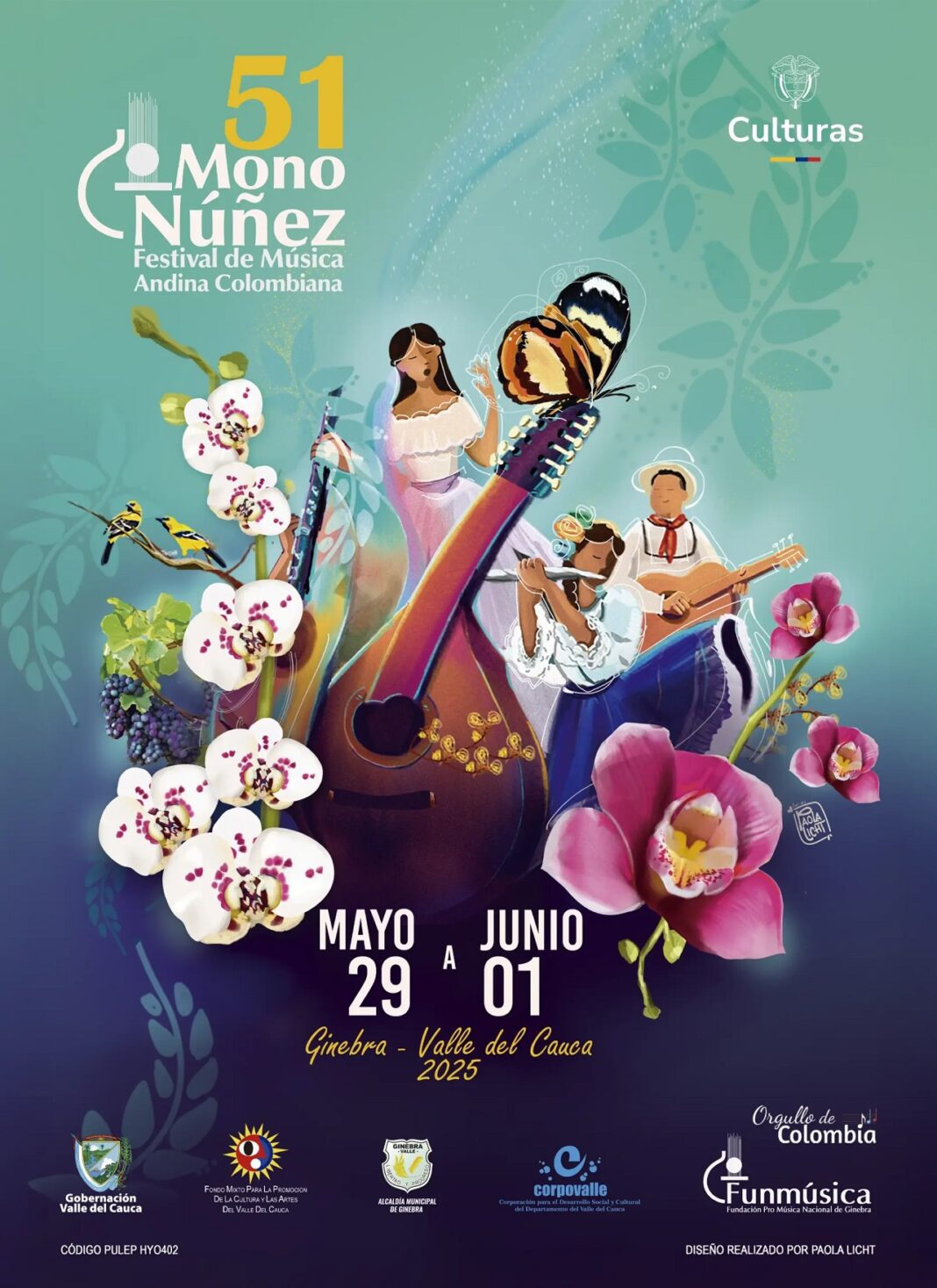 Ginebra, Valle del Cauca – marzo de 2025. La Fundación Promúsica Nacional de Ginebra (Funmúsica) ha revelado el afiche oficial del 51.º Festival Mono Núñez, seleccionando la obra de la diseñadora santandereana Paola Licht como la imagen representativa del evento.