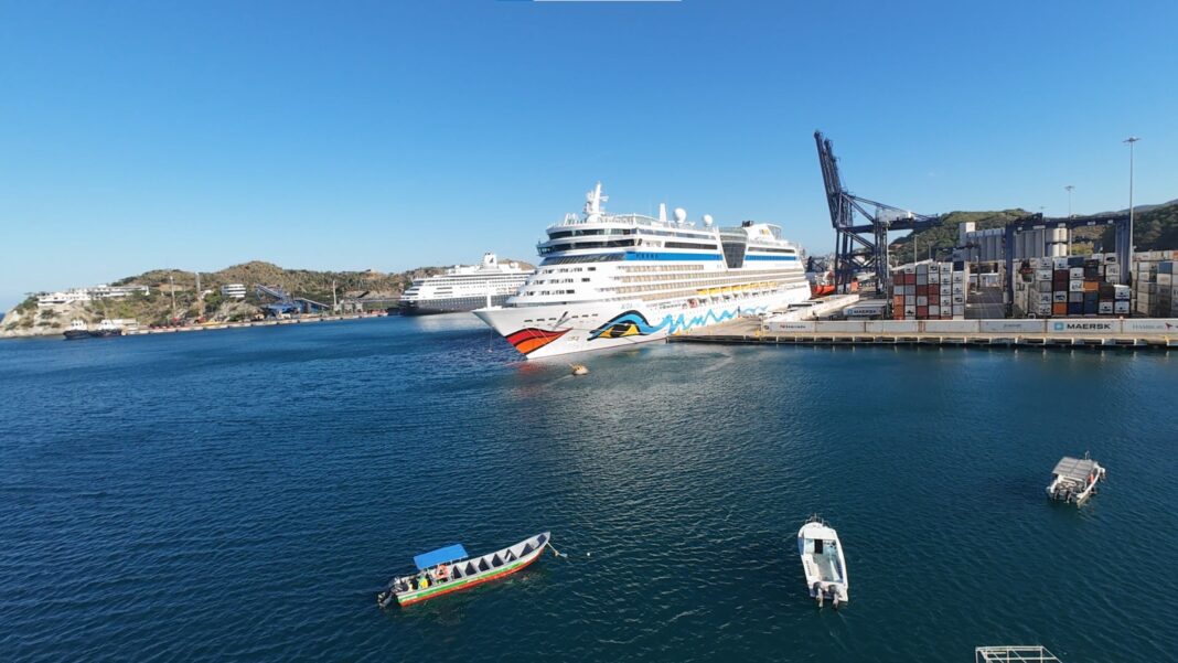Por su parte, el crucero Aida luna, procedente de Cartagena, el cual arribó con 2,076 pasajeros y 603 tripulantes, consolidando a Santa Marta como un punto clave en las rutas de las principales navieras internacionales.