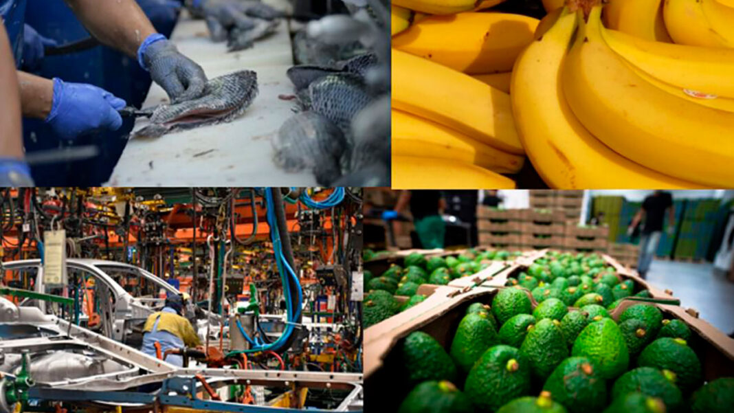Los datos del Ministerio de Comercio, Industria y Turismo, con base en las cifras del DANE, evidencian que entre los productos que ayudaron a impulsar el crecimiento de las exportaciones de bienes no mineros están los filetes de tilapia, que registraron un aumento del 115,5 % frente al primer trimestre del 2023; el banano, con un crecimiento del 84,9 %; los vehículos para carga y para personas, que incrementaron sus exportaciones en 74,4 %, y el limón Tahití, con una variación positiva de 60,3 %.