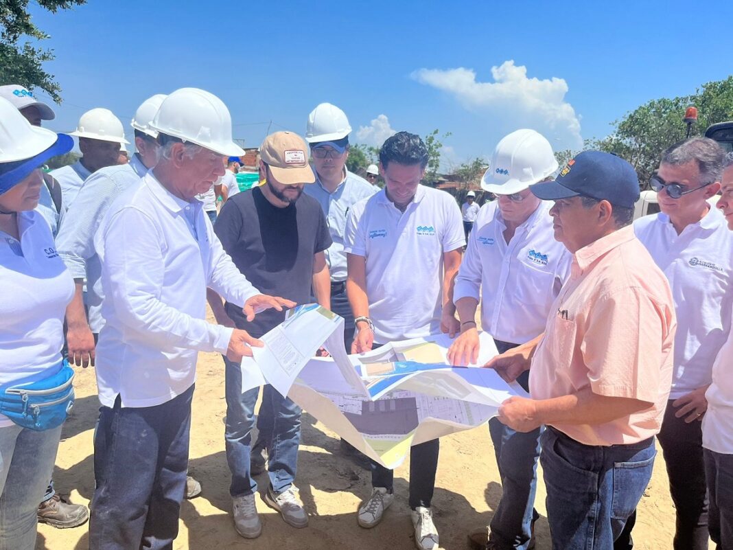 Durante una visita técnica, el alcalde Jaime Pumarejo Heins y el gerente general de Triple A, Jairo De Castro, inspeccionaron las obras que a la fecha registran un 75% de avance en instalación de redes y acometidas, y un 20% en la construcción de la Estación de Bombeo de Aguas Residuales (Ebar).