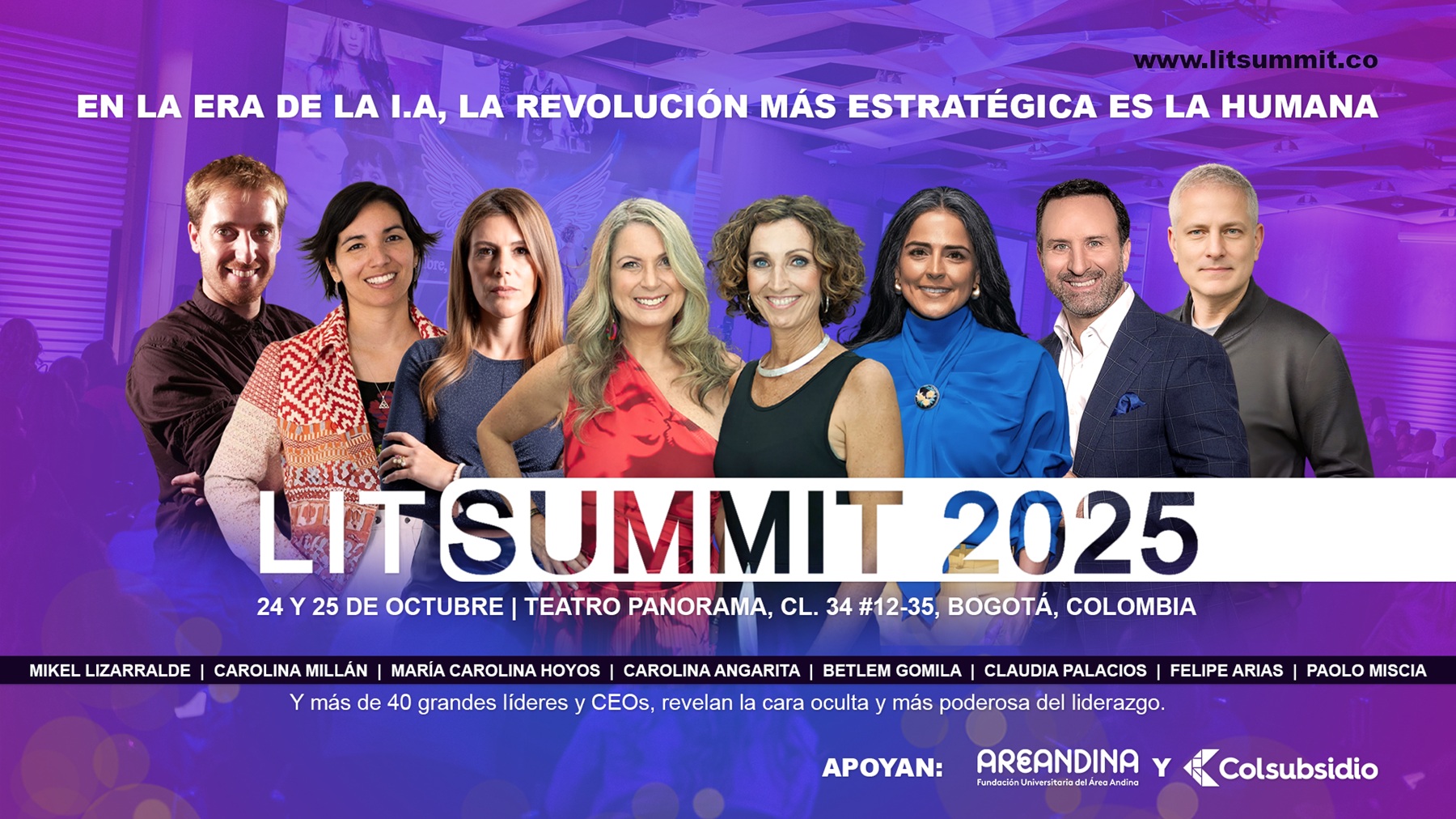 Además, se presentarán +40 speakers LIT —reconocidos líderes colombianos con historias de vida crudas, potentes y honestas que tocarán el núcleo de cada asistente.