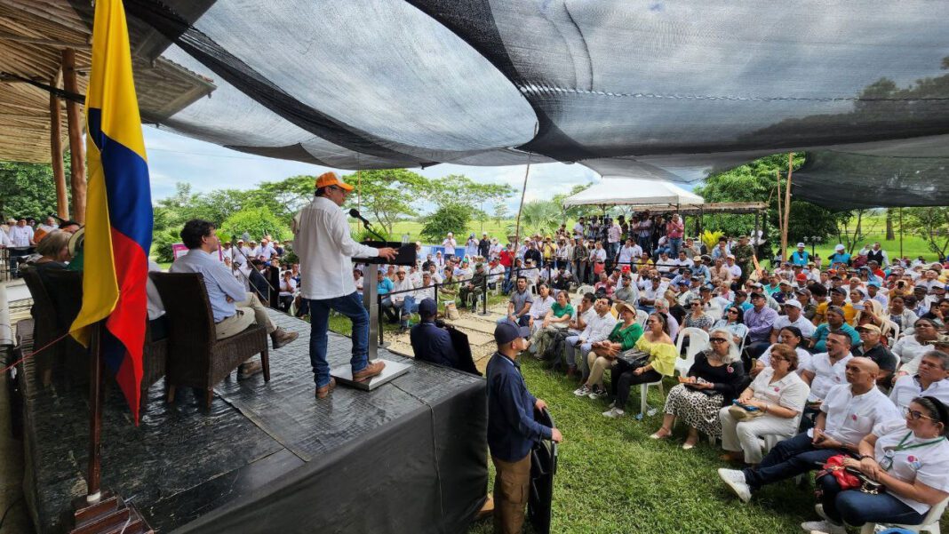 El Presidente Gustavo Petro participó este sábado en la entrega de 591 hectáreas, avaluadas en 8.503 millones de pesos, a 50 familias campesinas de Córdoba, en un acto histórico para avanzar en la Reforma Agraria y en la construcción de la Paz Total.