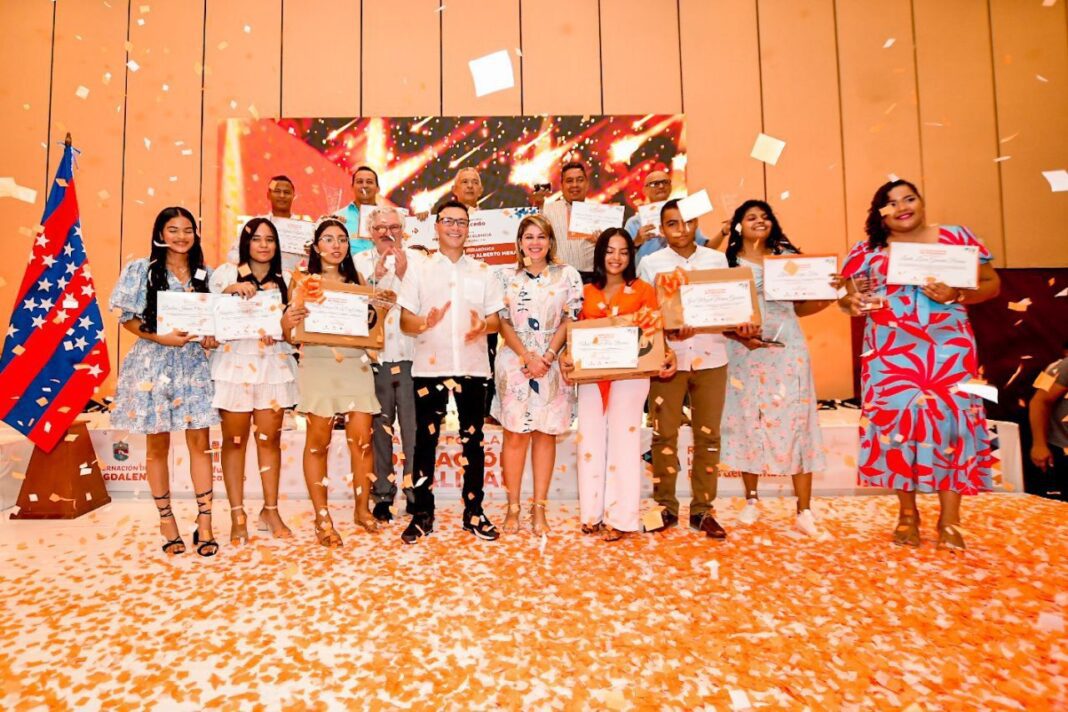 Los mejores estudiantes del Departamento en las pruebas Saber 11 también recibieron su reconocimiento: primer lugar para Natalia Vanessa De La Cruz Collazos del Liceo Pivijay, segundo, tercer y cuarto puesto para Nicol Abad Ríos Barrios, José Miguel Blanco Guerrero, y Angelina Mileth Gutiérrez Castro, los tres del Liceo Ariguaní y Dailen Ivana Orozco Pimienta del Liceo Santander.