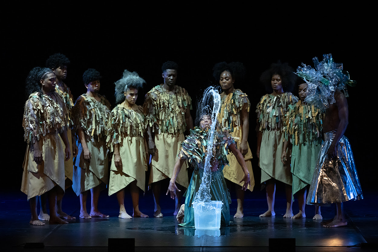 Por el lado de las obras nacionales, el turno fue para la danza. Desde Medellín, el grupo Sankofa Danzafro presentó ‘Geografías Líquidas’ en el Teatro Colón, una coreografía –creada y dirigida por Rafael Palacios– que explora la relación vital entre las comunidades afro y los ecosistemas acuáticos como los ríos, los arroyos y el mar.