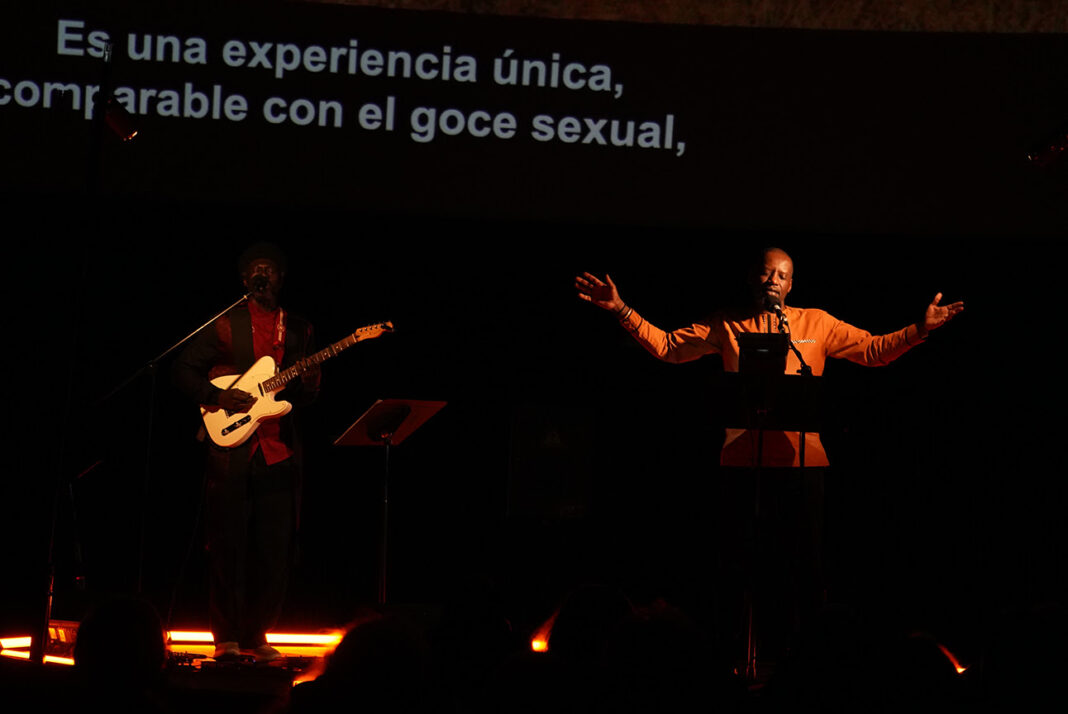 Acompañado por en vivo por el músico Majnun, Rugamba entabló una conversación con su padre, su madre y sus hermanos, asesinados durante el primer día del genocidio que ocurrió en su país en 1994.