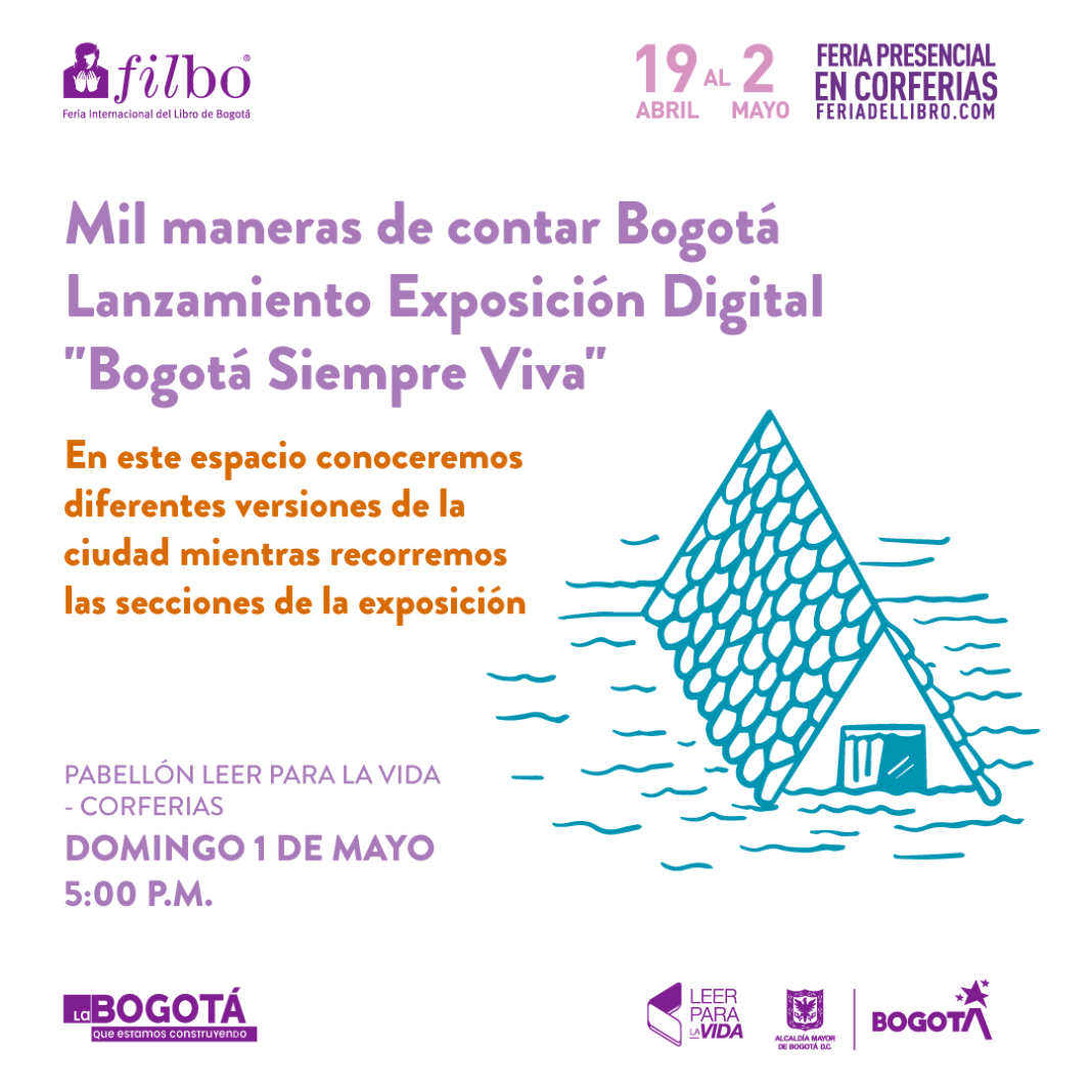La exposición digital #BogotáSiempreViva se estrenará en la FILBo 2022, con el conversatorio Mil maneras de contar a Bogotá, espacio en el que se hablará sobre sobre la arquitectura de la exposición con la participación del curador de la exposición, Fabián Mauricio Martínez, el comediante y narrador oral, Manuel Vera y la rapera y compositora colombiana, Spektra de la Rima.