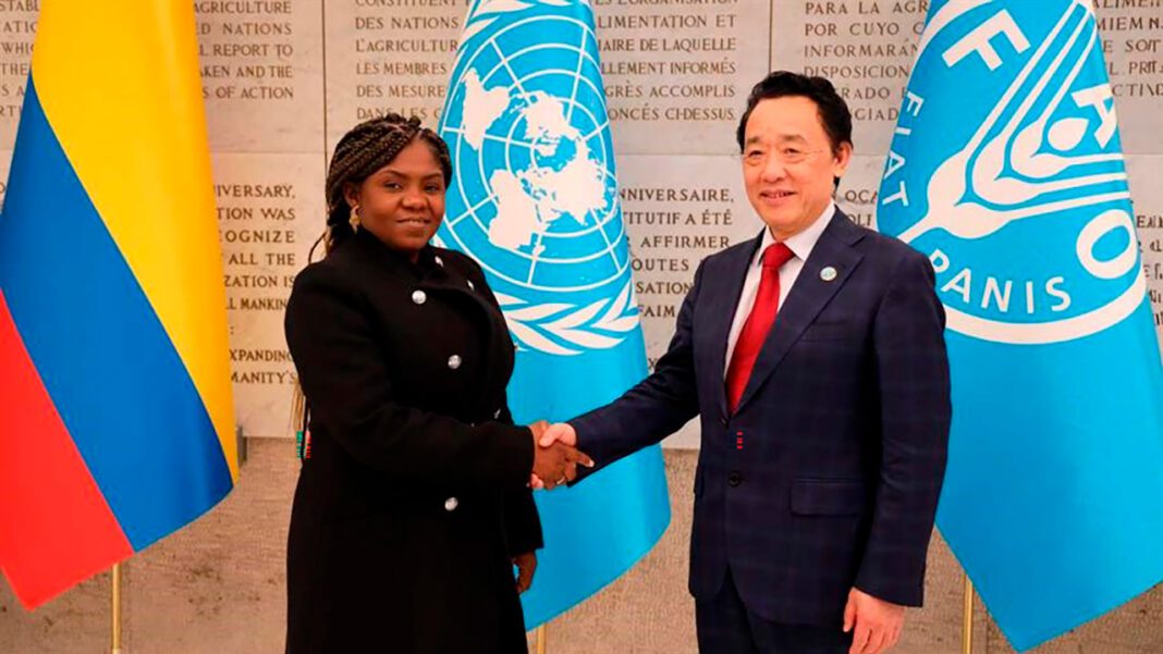 “Sabemos que el tema del hambre es un problema global que afecta a América Latina y a mi país. Lamentablemente tenemos alrededor de 15 millones de personas en Colombia con hambre o mal nutridas, y esto supone en un desafío enorme, como gobierno, que es erradicar esta situación”, le expresó la vicepresidenta y ministra de Igualdad y Equidad, Francia Márquez Mina, director de la Organización de las Naciones Unidas para la Alimentación y la Agricultura (FAO) QU Dongyu.
