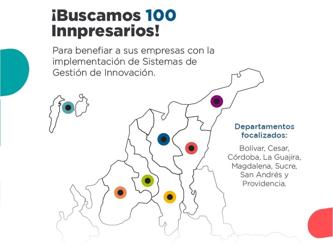 Esta convocatoria está disponible desde el 17 de mayo al 19 de julio de 2024 y tiene como objetivo incrementar las capacidades de innovación en empresas de los departamentos de Bolívar, Cesar, Córdoba, La Guajira, Magdalena, San Andrés y Providencia y Sucre, a través de la implementación de Sistemas de Gestión de Innovación y el desarrollo de nuevos productos o servicios que involucran tecnologías de la industria 4.0, llevando a cabo etapas de fomento, ideación, prototipado y escalamiento.