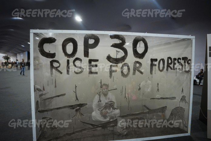 En la COP30, Greenpeace hace un llamado a la creación de un nuevo y dedicado Plan de Acción Forestal de 5 años para detener y revertir la deforestación y la degradación de los bosques para 2030, así como un Plan de Respuesta Global que cierre la brecha de ambición para mantener vivo el objetivo de 1.5°C.
