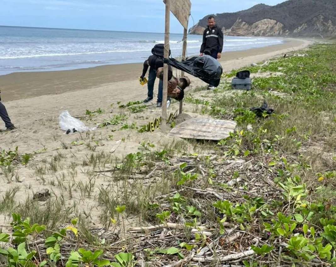 El descubrimiento se produjo alrededor de las 8.40 del domingo, cuando un grupo de personas que caminaba por la playa del sector Álamos alertó a las autoridades tras encontrar restos humanos expuestos en la zona costera. Según un informe oficial de la Policía Nacional, personal de la Zona 4, Subzona Manabí 13, Distrito Jipijapa y Circuito Puerto López se trasladó de inmediato al lugar y confirmó “la verificación de cinco piezas anatómicas [cabezas] que se encontraban suspendidas con una cuerda, colocadas sobre dos cañas”.