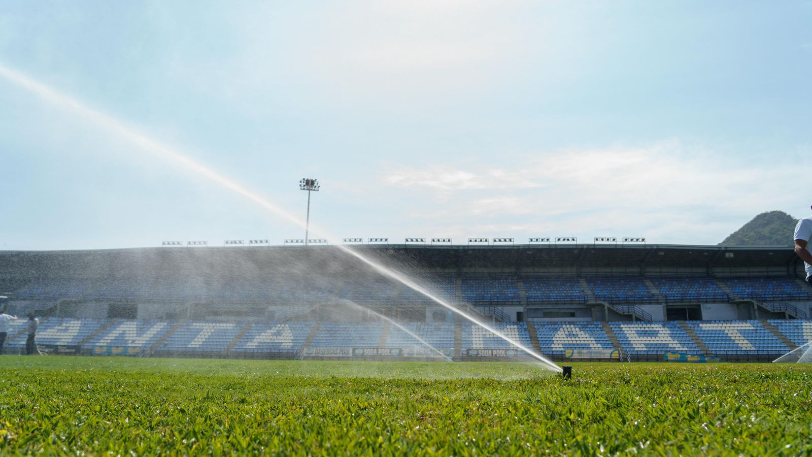 Tras estas primeras acciones, Carlos Cárdenas, representante de la empresa Eco Garden, encargada de los trabajos en el césped, explicó: “Estamos realizando unos trabajos de corte a baja altura, primero, también estamos haciendo un verticut para la descompactación del gramado. Estamos realizando también unas fertilizaciones foliares y también unos controles de plagas y malezas en todo el escenario.”