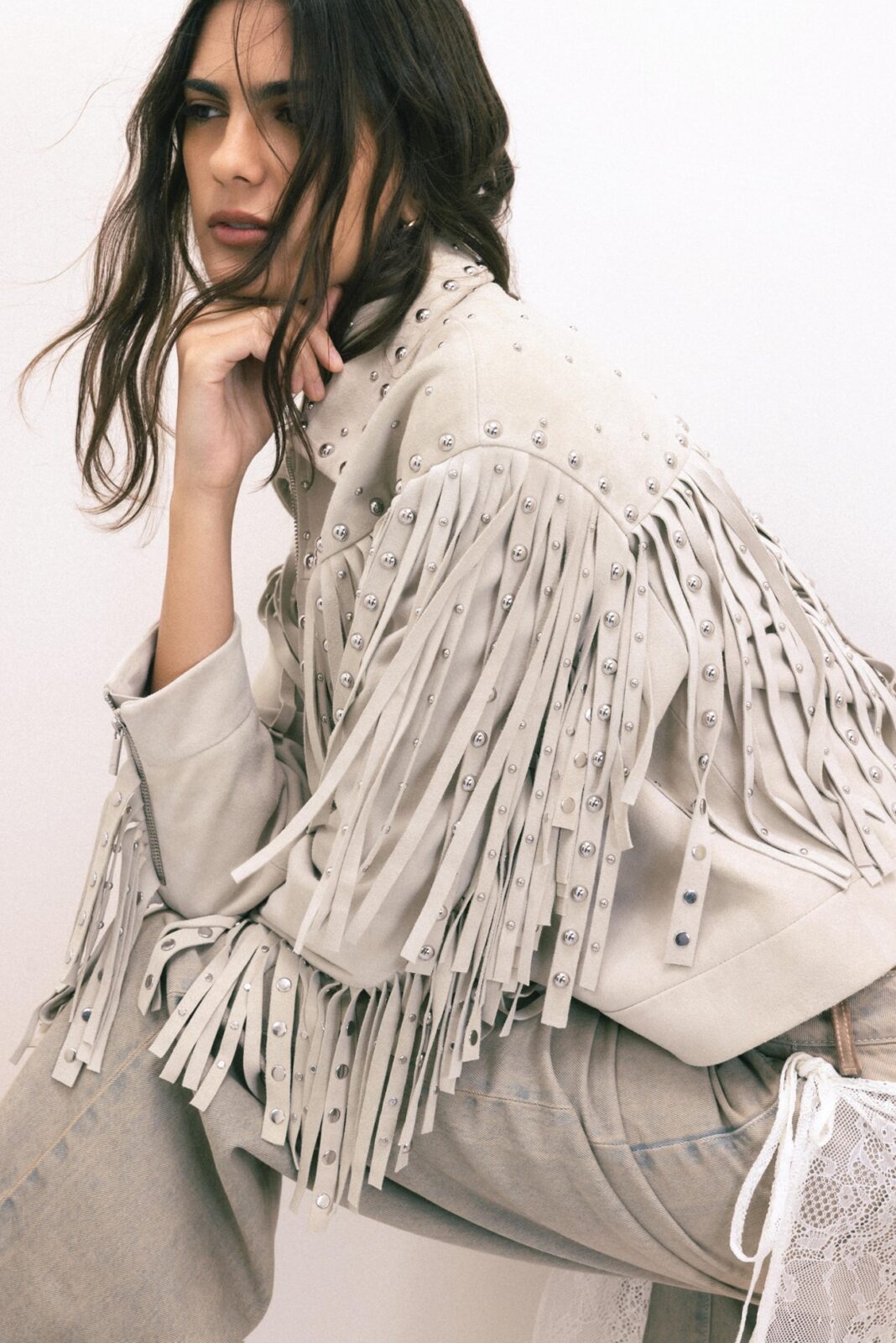 En un entorno donde el movimiento es constante, el diseño se convierte en aliado: chaquetas amplias, vestidos sueltos, denim de caída amplia y capas ligeras facilitan la transición del día a la noche. Los flecos aportan dinamismo visual y las siluetas relajadas permiten libertad sin perder presencia.