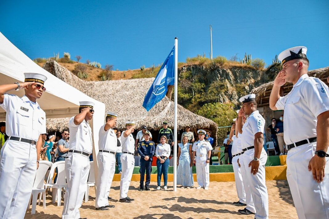 A orillas de las cristalinas aguas de Playa Blanca, la alcaldesa Virna Johnson, en compañía de prestadores turísticos de este balneario realizaron el acto protocolario de izada de la bandera azul que cataloga este importante atractivo de Santa Marta como un destino de calidad y sostenible.