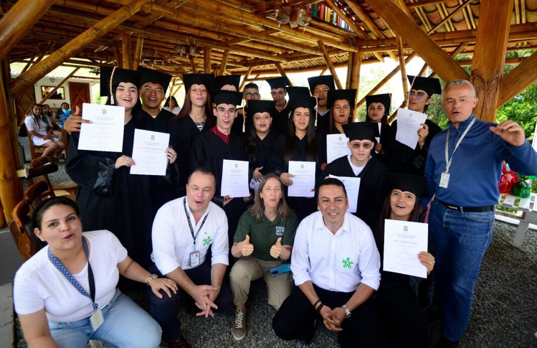 Gracias a la alianza entre Postobón y el Sena, 16 jóvenes del municipio de Belén de Umbría, hijos y nietos de los de agricultores vinculados al programa Hit Social Postobón, se graduaron como Técnicos Agrícolas, bajo el propósito que se dediquen a fortalecer el agro colombiano y a continuar con los cultivos de sus familias.