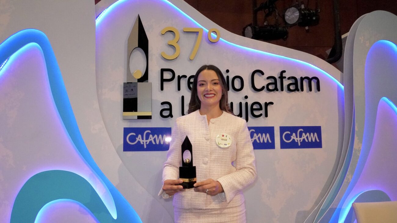 La gestora cultural y escritora Julieth Peraza recibió la estatuilla de Mujer Cafam Cesar 2026 durante la 37ª edición del Premio Cafam que se realizó en Bogotá.