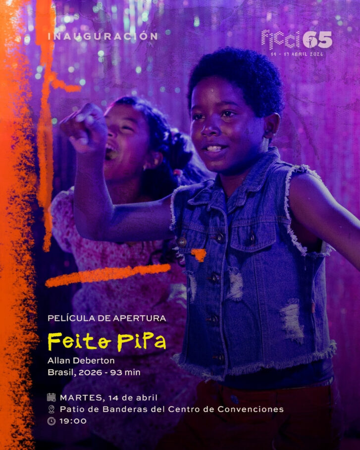 Cartagena de Indias, 6 de abril de 2026. Con la proyección de la cinta brasileña Feito Pipa, el Festival Internacional de Cine de Cartagena abre oficialmente su edición número 65 el martes 14 de abril.