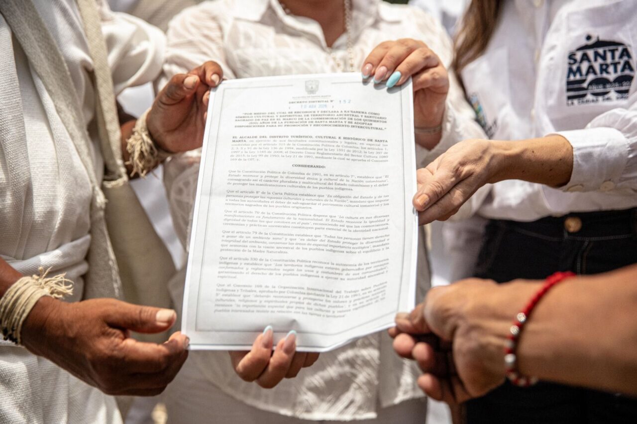 En el marco del Capítulo Étnico de los 500 años de Santa Marta, esta declaratoria reconoce el valor cultural, espiritual y ancestral del territorio, en articulación con el Ministerio de las Culturas y las comunidades indígenas.