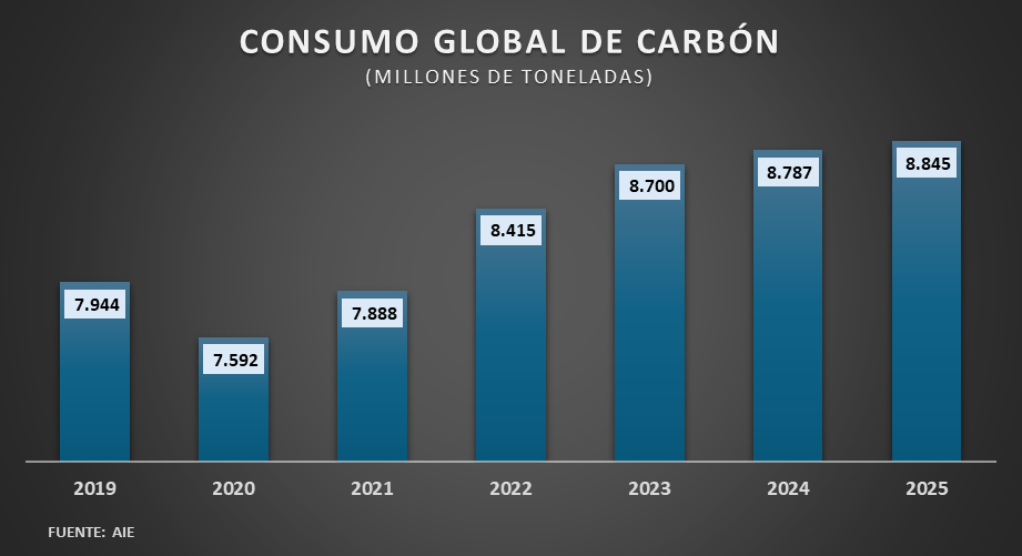 Las cifras no mienten, en el caso del petróleo la demanda, por primera vez superó la barrera de los 100 millones de barriles/día y el año anterior registró los 104 millones, otro tanto ocurre con el carbón, cuya demanda pasó de los 8.700 millones de toneladas en 2023 a las 8.845 millones de toneladas en 2025!