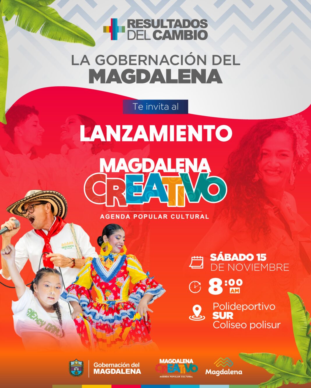 La Gobernación del Magdalena, a través de la Oficina de Cultura del Departamento, lanzará este sábado 15 de noviembre la segunda versión del Festival Magdalena Creativo.