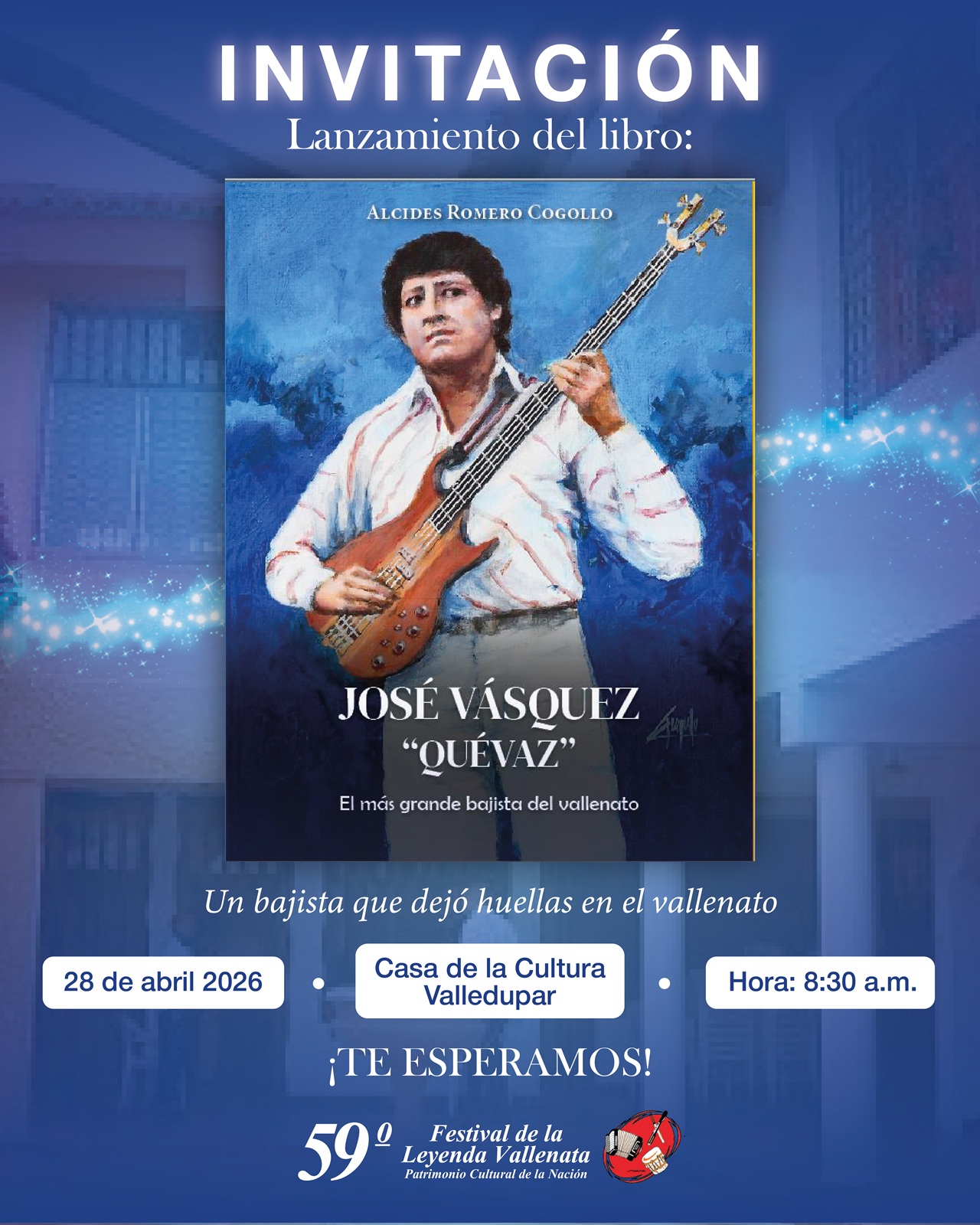 En el marco del 59° Festival de la Leyenda Vallenata, el escritor Alcides Romero presentará el libro ‘José Vásquez ‘Quevaz’’, una obra de 300 páginas que documenta la vida del bajista que revolucionó el género.
