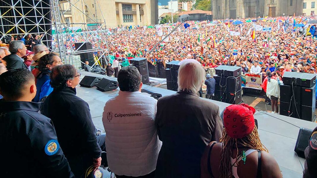 Desde la Plaza de Bolívar, cuya concentración fue la mayor entre los más de 100 municipios del país, el presidente Gustavo Petro le agradeció al pueblo, para quienes se centra la labor del gobierno: lograr que cada una de las personas que habita en Colombia pueda vivir mejor y sentir que viven mejor.