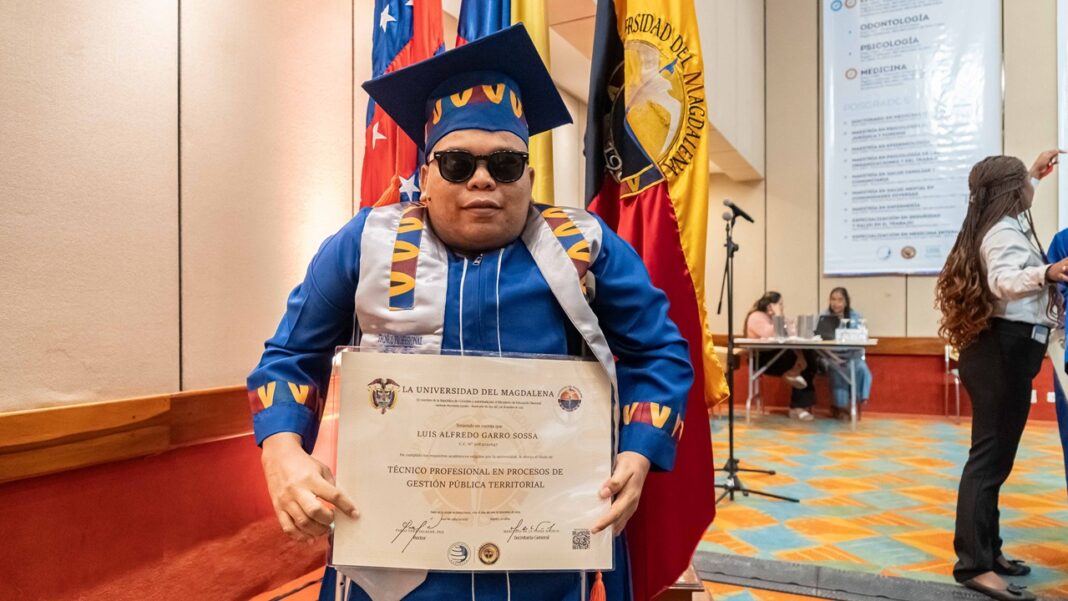 La Universidad del Magdalena, liderada por el rector Pablo Vera Salazar, continúa consolidándose como una institución incluyente y comprometida, demostrando que la educación es un derecho para todos, con la graduación de Luis Alfredo Garro Sosa, en condición de discapacidad física y visual.