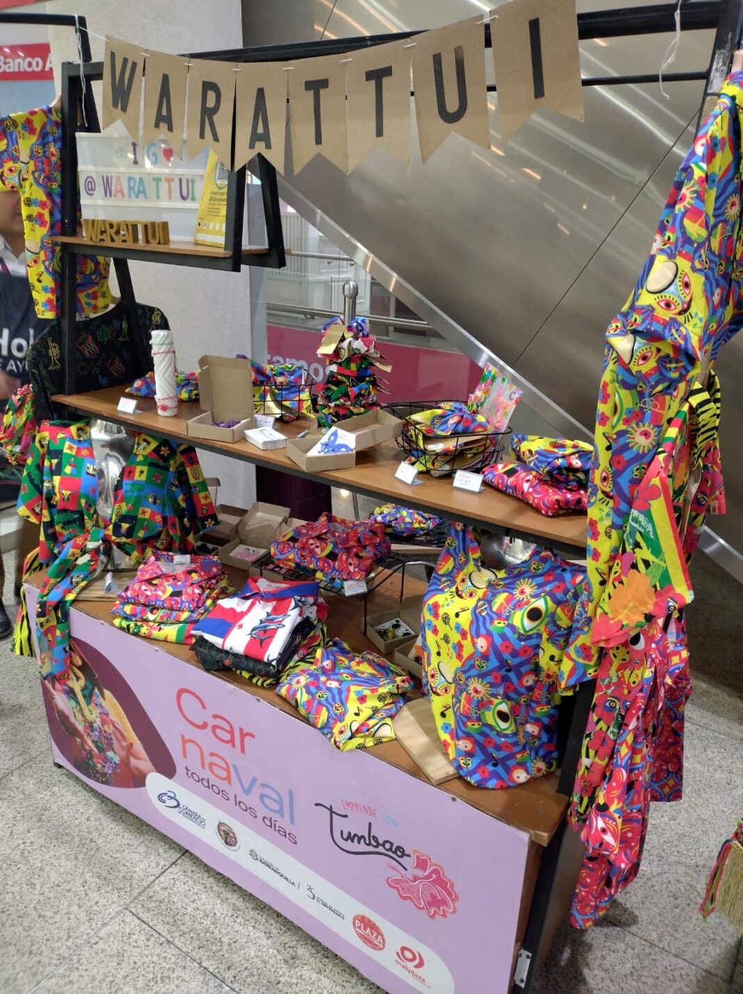 En el piso M0 del centro comercial, más de 40 emprendedores exhibirán sus artesanías y productos, muchos de ellos alusivos a las marimondas, monocucos y otros referentes del Carnaval. Estos emprendimientos hacen parte de la feria ‘Emprende con Tumbao’ organizada junto a aliados locales como la Unidad de apoyo al empresario de la Alcaldía, la Secretaría de Desarrollo Económico, la Cámara de Comercio y Carnaval S.A., en cabeza de la reina del Carnaval de este año, Melissa Cure Villa.